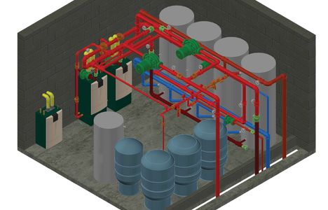 All the science behind creating better buildings and houses. Above is a 3D design that Henry created for mechanical systems. To the right is an energy efficient apartment building Henry helped design that didn't cost any more to build than one that isn't. Both are pictures from the book.